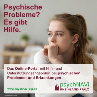 Viele Menschen wissen bei psychischen Problemen oder Erkrankungen nicht, wo sie Hilfe finden. Das Internet-Portal psychNAVi Rheinland-Pfalz fasst das landesweite Hilfesystem mit etwa 1200 Angeboten von 250 Anbietern zusammen. Das Portal wurde von der Landeszentrale für Gesundheitsförderung in Rheinland-Pfalz e.V. (LZG) mit Unterstützung des Ministeriums für Wissenschaft und Gesundheit und den Koordinatorinnen und Koordinatoren für Gemeindepsychiatrie der Landkreise und kreisfreien Städte erstellt. Mehr unter www.psychnavi-rlp.de oder über den Sozialpsychiatrischen Dienst der Kreisverwaltung.