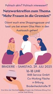 Am Samstag, den 29. Juli 2023 laden Christina Hartmer und Beate Tömmes, die Gleichstellungsbeauftragten des Eifelkreises Bitburg-Prüm und der Stadt Bitburg in der Zeit von 16-18 Uhr zum Austausch in die B4B Service GmbH nach Bitburg ein.