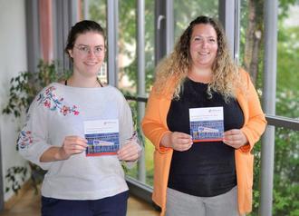 Von links: Führerscheinneuling Beatrix Kohl und Mitarbeiterin Kim Holbach von der Führerscheinstelle stellen den neuen Info-Flyer für Führerscheinanwärter vor (Foto: Kreisverwaltung).