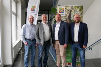Von rechts: Andreas Schmadel und Peter Jürgens (Geschäftsführer) von ORGAINVENT GmbH, Markus Pfeifer (Geschäftsführer) und Thomas Biewer von Regionalmarke EIFEL GmbH (Foto: RME)