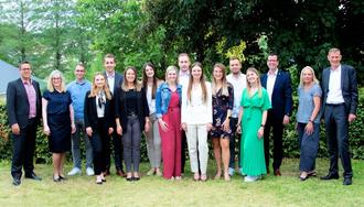 Anlässlich der Prüfungsfeier würdigt der Vorstand der Kreissparkasse Bitburg-Prüm die erfolgreichen Abschlüsse von Bankausbildung und dualem Studium. Über die IHK-Qualifikation geprüfter Bankkaufleute dürfen sich freuen: Sarah Diederich, Markus Grünen, Theresa Grund, Tim Golumbeck, Lena Hostert, Sarah Kauth, Jennifer Ludes, Maximilian Palms, Robin Roth und Jana Schmidt. Fabienne Ballmann, Daniel Eichten und Theresa Müller konnten 2021 ihr Studium erfolgreich im Grad Bachelor of Arts abschließen.