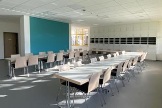 Neben einer modernen und leistungsstarken IT-Infrastruktur auf dem gesamten Schulgelände stehen neben modernsten Unterrichtsräumen auch eine neue Mensa (Ausgabeküche) mit Speiseraum für den Ganztagsschulbetrieb ab dem kommenden Schuljahr zur Verfügung.