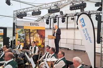 Der Musikverein Biersdorf gestaltete eine Eröffnungsfeier mit zahlreichen Gästen am Samstagabend. Landrat Andreas Kruppert, der neben VG-Bürgermeisterin Janine Fischer und Ortsbürgermeister Arnold Kootz zu den Festrednern gehörte, wies auf die Entwicklungsgeschichte, jedoch ebenso auf die aktuellen Herausforderungen hin: „Der Tourismus ist ein Seismograf für das wirtschaftliche Stimmungsbild. Und so sind Biersdorf und sein See immer Zeuge für die touristische Entwicklung mit all ihren Ausprägungen gewesen“, so Landrat Kruppert. „Uns allen ist bewusst, dass der Eifelkreis nicht nur als Ferienregion weiter an Bedeutung zunehmen muss, sondern ebenso als attraktiver Ort zum Wohnen und Arbeiten zu erhalten ist. Ein Freizeitangebot wie unser Stausee Bitburg stellt insofern viel mehr als ein Ausflugsziel dar. Im Verbund mit vielen weiteren Bausteinen trägt er wesentlich dazu bei, dass eine Region im Wettbewerb mit anderen Standorten mithalten und sich durchsetzen kann.“