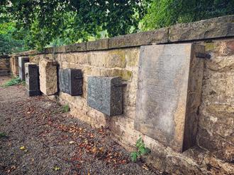 Wand mit jüdischen Grabsteinfragmenten (Foto: Felsenland Südeifel Tourismus GmbH, Anna Carina Krebs)