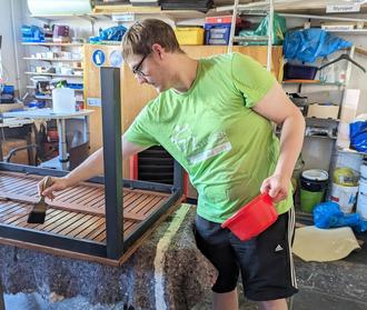 Schon während seiner Schulzeit hat Dominik Dumanski an einer Arbeitsgemeinschaft für Menschen mit Behinderung (BAG) im Haus der Jugend teilgenommen. Hier konnte er dem damaligen Hausmeister über die Schulter blicken und hat dann festgestellt, dass ihm diese Arbeit gefallen könnte. Seit 2015 arbeite er nun fest im Haus der Jugend und seine Tätigkeiten bestehen hauptsächlich aus Instandhaltung und Zusammenbau von Möbeln, Pflege der Außenanlagen, Mithilfe bei Renovierungsarbeiten wie z. B. Anstreichen, Aufbau und Abbau sowie Getränkeservice und Gästebewirtung bei Veranstaltungen, Unterstützung bei der Raumbelegung, Aufräum- und Reinigungsarbeiten.