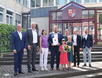 Den Glückwünschen des Landrates schlossen sich der Erste Beigeordnete Michael Ringelstein, Büroleiter Thomas Mayers, Personalrat Florian Haus sowie Ehefrau Maria Kandels und die Töchter Miriam, Magdalena und Mattea gerne an.