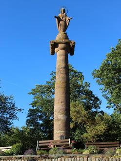 Mariensäule in Waxweiler und "Alter Grenzstein" auf dem Eichelsberg bei Waxweiler. (Fotos: Michael Fischer)