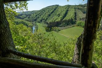 Ausblick vom Aussichtspunkt Königslay auf der Nat’Our Route 1 von Deutschland nach Luxemburg (Foto: Naturpark Südeifel/Thomas Urbany)