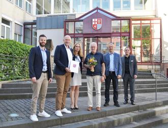 Mit den besten Wünschen für den Ruhestand und viele schöne Jahre bei guter Gesundheit bedankte sich Landrat Andreas Kruppert bei dem scheidenden Mitarbeiter. Den guten Wünschen schlossen sich die Geschäftsbereichsleiterin Gisela Mayer-Schlöder, Alois Klein als Vertreter des Jugendamtes sowie Markus Sohns für den Bereich Personal an. Als Vorsitzender des Personalrates verabschiedete Nils Leinen den Kollegen aus der Betriebsgemeinschaft.