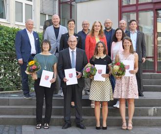 Landrat Kruppert dankte den Dienstjubilaren für ihre betriebliche Treue und ihre Leistung und überreichte ihnen mit vielen guten Wünschen für den weiteren Lebensweg und die berufliche Tätigkeit bei der Kreisverwaltung die Dankurkunden. Den guten Wünschen schlossen sich Büroleiter Carl Diederich, die Geschäftsbereichsleiter Gisela Mayer-Schlöder, Andrea Fabry, Thomas Kreutz und Martin Olinger sowie die Amtsleiter Birgit Schleder und Günter Maiers an. Für den Personalrat gratulierte Johannes Mehles.