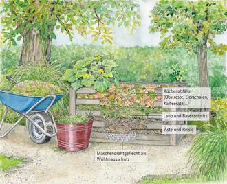 Auf die Vielfalt kommt es an beim Kompostieren. Schichten aus nur einer Komponente, die höher als 20 Zentimeter sind, behindern den Prozess des Kompostierens. Das Laub mancher Bäume wie Eiche, Kastanie und Walnuss verrottet nur sehr langsam und sollte deshalb besser nicht in größeren Mengen auf den Kompost gegeben werden. Größere Mengen Rasenschnitt sollten vor dem Kompostieren ein paar Tage trocknen, damit nicht zu viel Feuchtigkeit entsteht. Wird der Kompost gleich komplett aufgeschichtet, geht die Kompostierung am schnellsten. Das Material wird dabei geschichtet und abgedeckt. Ein über das Jahr aufgeschichteter Kompost wird langsamer abgebaut, nach zehn bis zwölf Monaten ist der Kompost fertig. In dieser Zeit sollte der Kompost ein bis zwei Mal umgesetzt werden.