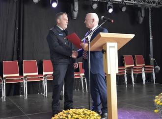 Ein gemeinsames Festwochenende der gesamten „Blaulichtfamilie“ bot den passenden Anlass für den Führungswechsel bei der Freiwilligen Feuerwehr Prüm im Beisein von Landrat Andreas Kruppert, dem stellv. Brand- und Katastrophenschutzinspekteur des Eifelkreises Lars Eichten sowie weiteren Gästen. Deren langjähriger Wehrführer Lothar Bormann hatte auf eigenen Wunsch seine Führungsaufgabe zur Verfügung gestellt; als Feuerwehrkamerad bleibt er der Prümer Feuerwehr bis zum Erreichen der Altersgrenze von 67 Jahren jedoch erhalten.