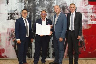 Landrat Kruppert mit Michael Ludwig, MdL, Rainer Nickels, Vorsitzender des Vorstandes und Mark Kaffenberger, Vorstandsmitglied der Kreissparkasse Bitburg-Prüm (Foto: KSK)