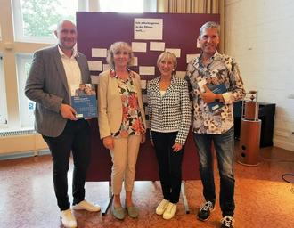 Von links: Landrat Andreas Kruppert stellt im Beisein von Monika Schuster, Brunhilde Hell und Rudolf Pick die Broschüre „Pflege im Eifelkreis“ vor (Foto: Kreisverwaltung)
