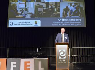 Andreas Kruppert, Präsident der Zukunftsinitiative Eifel, eröffnet die Fachtagung zum Thema Fachkräftesicherung