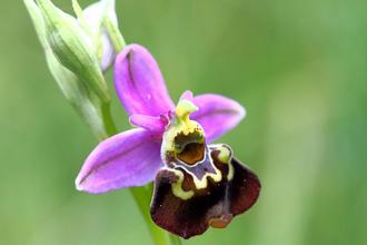 Die Hummel-Ragwurz (Ophrys holoserica) ist eine von 30 Orchideenarten im Naturpark Südeifel (Foto: Naturpark Südeifel/Günter Müller).