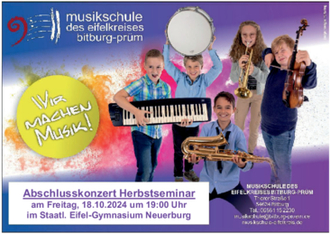 Am Freitag, den 18.10.2024 präsentiert das Orchester des Herbstseminars die Ergebnisse der einwöchigen Probenarbeit in der Aula des Staatl. Eifel-Gymnasiums Neuerburg.