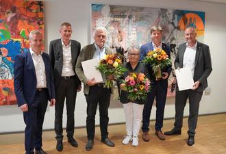 Im Rahmen der Verwaltungsratssitzung der Kreissparkasse Bitburg-Prüm überreichte Landrat Andreas Kruppert, Vorsitzender des Verwaltungsrates der Kreissparkasse Bitburg-Prüm, die Ehrungen an Frau Monika Fink, Herrn Helmut Fink und Herrn Stephan Kohl.