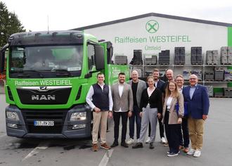 Anschließend erfolgte ein Besuch beim Raiffeisen-Markt in Üttfeld, betrieben von der Raiffeisen-Waren-GmbH Westeifel. Der Standort dient als Abhol- und Auslieferungslager für Agrar- und Baustoffe und bietet zudem ein umfangreiches Sortiment für Heimwerker und Heimtierbedarf. Ein intensiver Austausch mit Markus Hoffmann und Jan Leiendecker als neue Dopplespitze der Geschäftsführung sowie mit dem scheidende Geschäftsführer Carsten Berke fand statt.