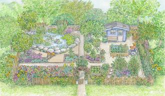 Wichtig ist zuerst darüber nachzudenken, wie der Garten später aussehen und wie er genutzt werden soll. Wird der Garten als Nutzfläche genutzt oder vor allem zur Erholung? Was ist auf dem vorhandenen Grundstück realisierbar? Ebenso ist es sinnvoll zu beachten, welche Veränderungen sich durch das Älterwerden der Gartennutzer ergeben, damit einige Elemente später ohne großen Aufwand angepasst werden können, beispielweise kann aus einer Sandgrube für Kinder ein naturnaher Gartenteich werden. Ist eine Wunschliste erstellt von Elementen, die im Garten vorhanden sein sollen, geht es an die grobe Flächenaufteilung: Wo ist der richtige Platz für ein sonniges Stauden- und Kräuterbeet oder einen Gartenteich, wo findet eine Sitzgelegenheit einen guten Platz? Dabei müssen die lokalen Gegebenheiten berücksichtigt werden, beispielsweise die Bodenbedingungen, das vorherrschende Klima und der Schattenwurf durch Gebäude und (wachsende) Pflanzen.