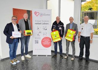 Gemeinsamer Start für die Ersthelfer-App im Eifelkreis (von rechts): Dr. Andreas Palzer (stellv. Chef der Trierer Berufsfeuerwehr), Dr. Dirk Nauheimer (Oberarzt Klinikum Brüderkrankenhaus Trier), Rainer Hoffmann (Kreisgeschäftsführer DRK Bitburg-Prüm), Landrat Andreas Kruppert, der Erste Kreisbeigeordnete Michael Ludwig, MdL (Foto: Kreisverwaltung)