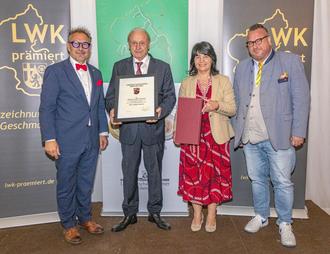 Von links: Der Erste Kreisbeigeordnete Michael Ludwig, MdL, Reinhard Haller (Haller´s Destillerie), Kammervorstand Gudrun Breuer, Staatssekretär Andy Becht (Foto: Landwirtschaftskammer RLP)