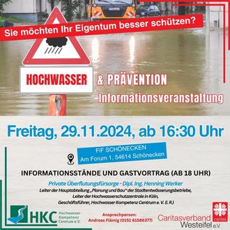 Vor dem Hintergrund wiederholter Starkregenereignisse organisiert die Fluthilfe des Caritasverband Westeifel e. V. in Kooperation mit dem Hochwasser Kompetenz Centrum e. V. eine Informationsveranstaltung „Hochwasser & Prävention“: