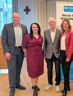Landrat Andreas Kruppert, Mitarbeiterin Weißer Ring Dominika Duda-Blaszko, Außenstellenleiter Hajo Jakoby, Landesvorsitzende Sabine Bätzing-Lichtenthäler. Foto: Weißer Ring Eifelkreis