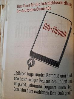 Anhand der heute noch vorhandenen Orts- und Schulchroniken aus dem Kreis kann nicht festgestellt werden, dass das Angebot des Verlages zur Erstellung einer Chronik in unserem Kreis größeren Anklang gefunden hat (Signatur 655, 171 Nr. 565).