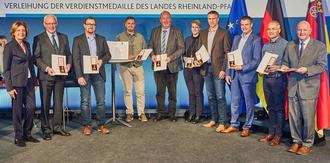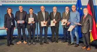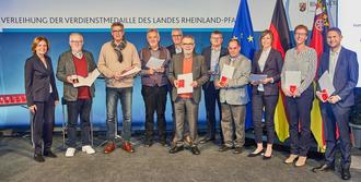 Günter Kirsch (Auw an der Kyll), 4.v.r. mit Ministerpräsidentin Malu Dreyer und Geehrten aus dem Landkreis Trier-Saarburg