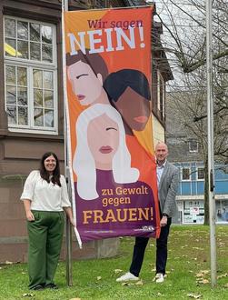Zum Start der UN-Women Kampagne „Orange the World“ am 25. November hissten Landrat Andreas Kruppert und Gleichstellungsbeauftragte Christina Hartmer gemeinsam vor der Kreisverwaltung die Flagge „Nein zu Gewalt gegen Frauen“. Auch Verbandsgemeinden und Städte im Eifelkreis schlossen sich dieser Aktion an.