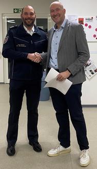BKI Jürgen Larisch dankte auch im Namen seines weiteren Stellvertreters, Willi Schlöder, für die gute Zusammenarbeit und betonte, dass er gut in das Team passt, viele Arbeiten übernimmt, neue Ideen einbringt und somit für Verwaltung und Katastrophenschutz eine große Hilfe und Bereicherung ist.