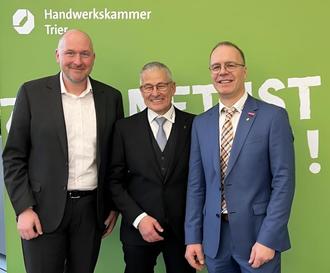 Von links: Landrat Andreas Kruppert mit dem verabschiedeten HWK-Präsidenten Rudi Müller und dem neuen Präsidenten Bernd Elsen (Foto: Kreisverwaltung)
