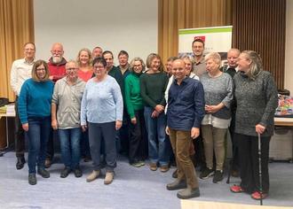 Teilnehmende der Schulungsreihe mit Schulungsleiter Reinhold Seiwert (SKFM Prüm, ganz li.), Waltraud Schaal (1. Vors. SKFM Prüm, vorne dritte v. li.) und Nico Steins (Betreuungsbehörde Eifelkreis, ganz vorne). Foto: SKFM