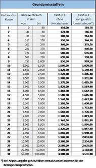 (2) Für jeden angefangenen Monat wird der auf den Jahresbezug hochgerechnete Grundpreis mit 1/12 der entsprechenden Verbrauchsklasse berechnet.