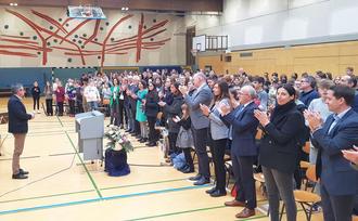 Stehende Ovationen für Jürgen Gieraths zum Dank für seinen Dienst als Schulleiter am SJG Biesdorf (Foto: Schule)