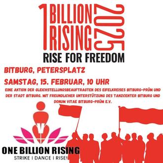 Weitere Informationen unter www.onebillionrising.de (One Billion Rising Support für Deutschland) oder www.onebillionrising.org (One Billion Rising International). Kontakt: Christina Hartmer, Tel. 06561 15-2110, E-Mail: gleichstellung@bitburg-pruem.de