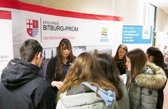 Landrat Andreas Kruppert lobte bei seinem Besuch diese Form der Orientierungsmöglichkeit, um die Weichen in die eigene berufliche Zukunft zu stellen. Die BBS Prüm unter der Leitung von Oberstudiendirektor Dr. Wieland Steinfeld befindet sich als eine von 12 Schulen in Trägerschaft des Eifelkreises Bitburg-Prüm.