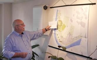 Ortsbürgermeister Herbert Theis veranschaulicht die Planungen zur Aufwertung des Prüm-Ufers in Irrel (Foto: Kreisverwaltung)