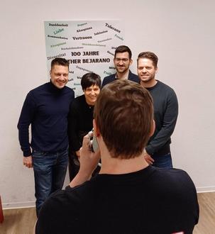 Raphael Schäfer, Kirsten Cortez, Carsten Quirin und Alexander Guß (von links) ließen sich vor dem Plakat mit den Leitwörtern von Sascha Fuchs fotografieren. Foto: Anette Plewka