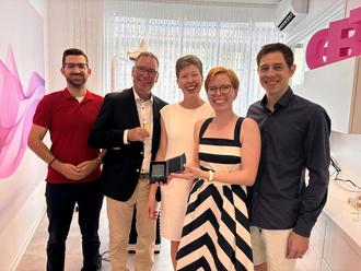 Nach 32 Jahren am Standort Holzmühler Straße ist die Gemeinschaftspraxis Baumann-Scherf (Harald Baumann, Dorothee Baumann und Dr. Victoria Scherf) in neue Räumlichkeiten umgezogen und zwar in die leerstehende Geschäftsstelle der Kreissparkasse Saarlouis (KSK) in der Feldstraße 71. Ein Umbau am bisherigen Standort mit umfangreichen Anpassungen an heute modernste technische und qualitätsoptimierte Ausstattungen sowie Erfordernisse an räumliche Bedingungen schienen nicht mehr möglich, was die Suche nach neuen Räumlichkeiten verstärkte. Mit dem leerstehenden KSK-Gebäude hatte das Ärzte-Team das Glück ein architektonisches Kleinod gefunden zu haben, das ihnen die Möglichkeit liefert ihrem Versorgungsanspruch gerecht zu werden. „Die Reaktivierung eines leerstehenden, als Bankgebäude erbauten Hauses in eine moderne Zahnarztpraxis war eine Herausforderung, die wir Dank unseres Planungs- und Handwerkerteams optimal umsetzen konnten“, so das Fazit der Zahnärzte. Bürgermeister Carsten Quirin gratulierte dem Praxisteam und dankte für die Investition am neuen Standort, die die zahnärztliche Nahversorgung in Lisdorf weiterhin gewährleistet. „Wir freuen uns zudem, dass weiterhin der SB-Terminal der KSK im Vorraum der Praxis bestehen bleibt, um die Bargeldversorgung vor Ort sicherzustellen“, so Bürgermeister Carsten Quirin.