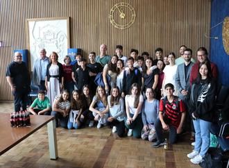Peter Demmer (zweiter von links) zusammen mit der Schülergruppe aus Rio de Janeiro, die er im Rathaus empfangen hat.