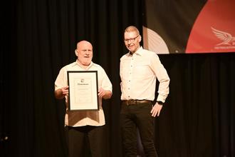 Fabian Hewer - Ernennung von Dieter Conradt zum Ehrenmitglied durch Stefan Hawner 1. Vorsitzender HSV Fraulautern
