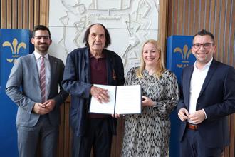 Der Saarlouiser Kunstsammler- und förderer Bernhard Giebel wurde gerade 90 Jahre alt. Für sein beeindruckendes Lebenswerk und sein unermüdliches Engagement in der Kunst- und Künstlerförderung wurde ihm nun das Verdienstkreuz am Bande der Bundesrepublik Deutschland, das Bundesverdienstkreuz, verliehen. Die Urkunde samt dazugehöriger Insignien überreichte die saarländische Kultur-Ministerin Christine Streichert-Clivot gemeinsam mit Oberbürgermeister Marc Speicher und Bürgermeister Carsten Quirin bei einer Feierstunde im Rathaus.