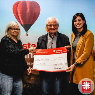 Viele kleine Spenden ergeben große Summen. So konnte Peter Metzdorf, Vorsitzender der Caritas-Stiftung Saar-Hochwald, einen Scheck in Höhe von 5.000,00 Euro an Bereichsleiterin Sandra Weiß und die Fachbereichsleiterin der Wohnungslosenhilfe, Stefanie Durst, überreichen.