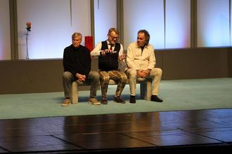 Jochen Busse, René Heinersdorff und Hugo Egon Balder (v.l.) als „komplexe“ Väter auf der Bühne im Theater am Ring.