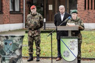 Am 68. Jahrestag der Gründung der Bundeswehr gelobten im Saarland insgesamt acht Rekrutinnen und Rekruten aus dem Projekt „Ungediente für die Reserve“, der Bundesre-publik Deutschland treu zu dienen und das Recht und die Freiheit des deutschen Volkes tapfer zu verteidigen. Das feierliche Gelöbnis fand in Anwesenheit des Oberbürgermeisters der Garnisonsstadt Saarlouis, Peter Demmer, und dem neuen Kommandeur des Lan-deskommando Saarland, Oberst Uwe Staab, vor dem Offizierheim der Graf-Werder-Kaserne in Saarlouis statt.