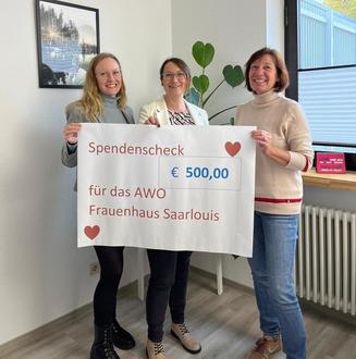 Das AWO Frauenhaus in Saarlouis bekam nun den ersten Teil der Spende. Die Leiterin des Frauenhauses Marie Jerzenbeck bedankte sich und freute sich sehr darüber. “Mit dieser großzügigen Spende wird das Projekt „Gute Berührung“ gefördert. Vielen Frauen wurde körperliche oder sexuelle Gewalt angetan. Mit Meditation, Atemübungen und auch mit positiven Körperberührungen, möchten wir den Frauen wieder ein wertschätzendes Gefühl für sich selbst und ihren Körper vermitteln. Des Weiteren wird das Geld für verschiedene Angebote wie zum Beispiel Kreatives Gestalten oder Ausflüge genutzt“ erklärt Marie Jerzenbeck.