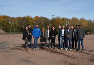 Oberbürgermeister Marc Speicher, Bürgermeister Carsten Quirin und Beigeordneter Gerald Purucker waren mit den zuständigen Mitarbeitern des Rathauses vor Ort, um sich über den Baufortschritt zu informieren. Auch Mitglieder des SC Roden, darunter der Vorsitzende Christian Demmer und sein Vater Peter Demmer waren vor Ort, um sich über den Stand der Arbeiten zu informieren.