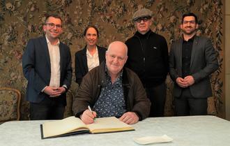 Markus Maria Profitlich bei seinem Eintrag ins goldene Buch im Rathaus von Saarlouis. Foto: Sascha Schmidt